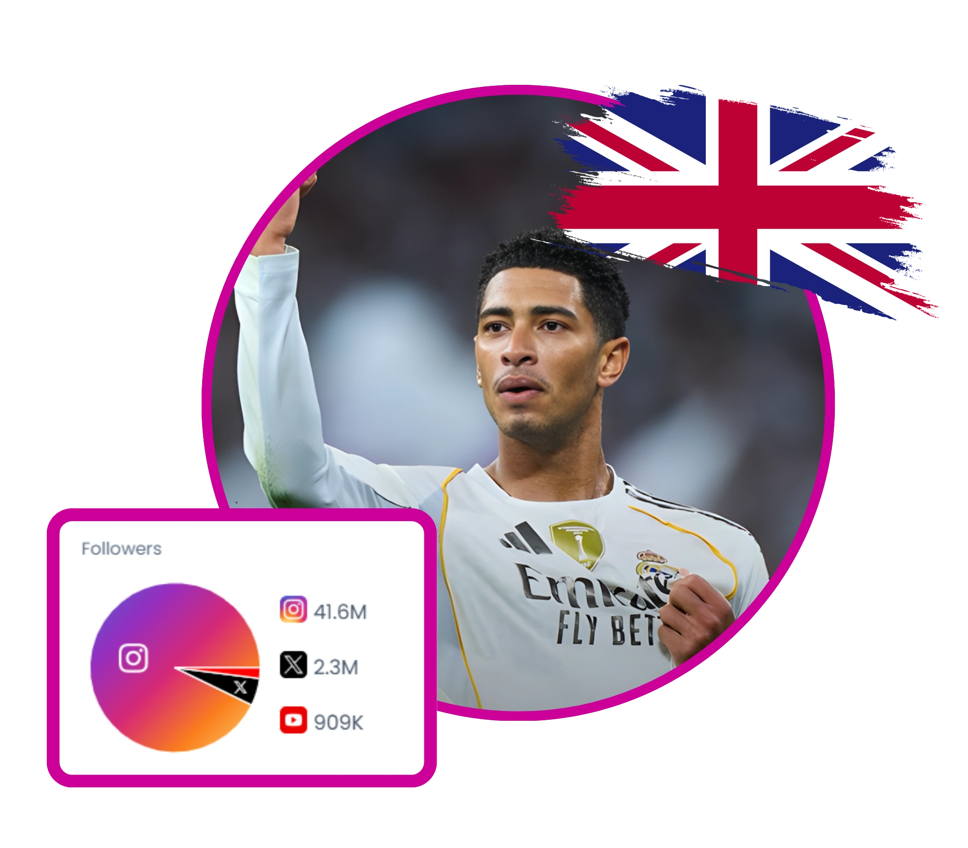 Jude Bellingham is a professional footballer playing for Real Madrid and an Adidas athlete. His social media presence is centered around his football career, showcasing behind-the-scenes content, personal achievements, and exclusive insights into his journey. He shares his experiences from joining Real Madrid, winning prestigious awards, and his aspirations with the England national team. His content is engaging for football fans, offering a personal glimpse into his life on and off the pitch.