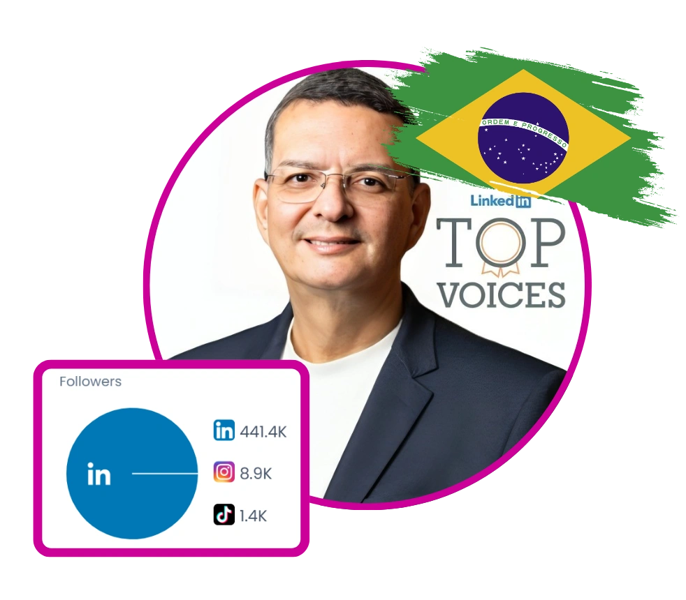 Andre Santos is a recognized LinkedIn Top Voice and the #1 influencer in Personal Branding, Sales, and Marketing in Brazil. With over 440,000 followers, he specializes in helping executives and companies enhance their reputation, influence decision-makers, and generate business opportunities on LinkedIn. Andre has mentored over 100 C-level executives, trained 20,000 professionals across 15 countries, and supported more than 200 companies through executive mentoring and corporate training programs. His content focuses on personal branding, executive reputation, and B2B social selling, often sharing his own journey and insights to inspire and educate his audience.