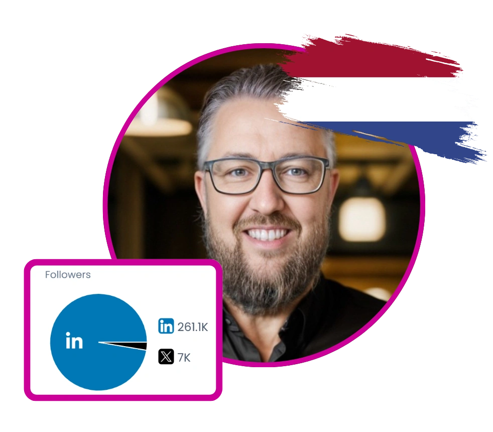 Michiel Verstraten is a Dutch entrepreneur, artist, and founder of YouLynq.me, a company focused on LinkedIn strategies and AI-powered business solutions. He creates content around entrepreneurship, marketing, sales, and LinkedIn growth, often sharing personal stories, business insights, and practical advice. Michiel is also a columnist for MarketingTribune and has been recognized as a top LinkedIn Growth Thought Leader in the Netherlands. His content includes vlogs, educational posts, and promotional material for his business, often integrating AI tools and strategies. He frequently collaborates with other professionals and shares experiences from his entrepreneurial journey, including challenges and successes.