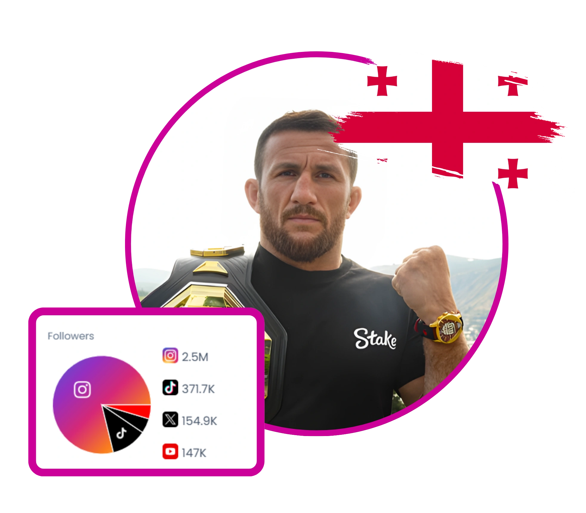 Merab Dvalishvili is a Georgian UFC Bantamweight fighter known as 'The Machine'. Based in Las Vegas with ties to Georgia and the US, he headlines competitive MMA, trains with top fighters, and serves as a brand ambassador for Aviator Spribe, Stake, Takedown Shop, Star Pro Combat, Setantageo, and VeChain. Active on Instagram, TikTok, YouTube, and Twitter, he shares fight prep, wins, team moments, and charity efforts for Georgian communities.