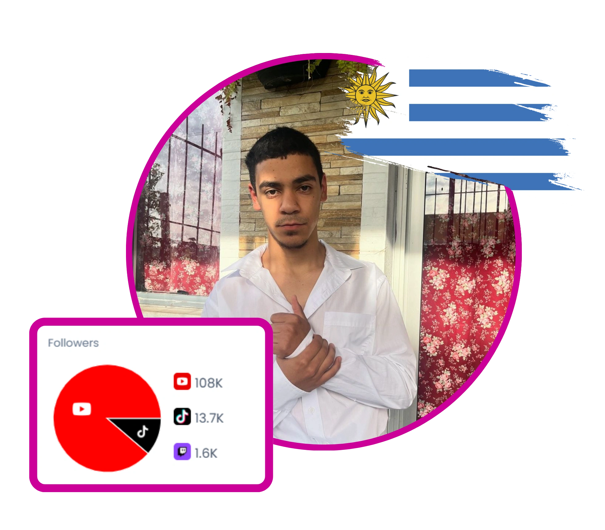 Brandon Monzón, creador uruguayo conocido como urugodd. Un artista multiplataforma centrado en los juegos, el streaming y el humor. Crea una comunidad a través de transmisiones de YouTube, clips de Twitch y contenido de formato corto en TikTok e Instagram, que incluye jugabilidad de Minecraft, beatboxing y desafíos picantes. Hace hincapié en YouTube como su plataforma principal y en su continuo esfuerzo por aumentar el alcance y entretener a los espectadores en español.